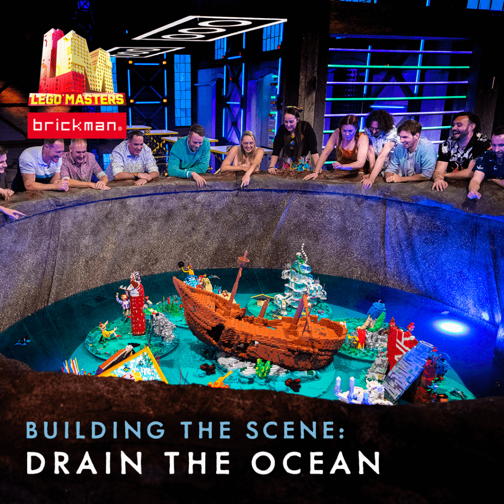 The Brickman team built the shipwreck at the centre of this challenge as well as designed the 8 circular round base plates for the contestants to build on.